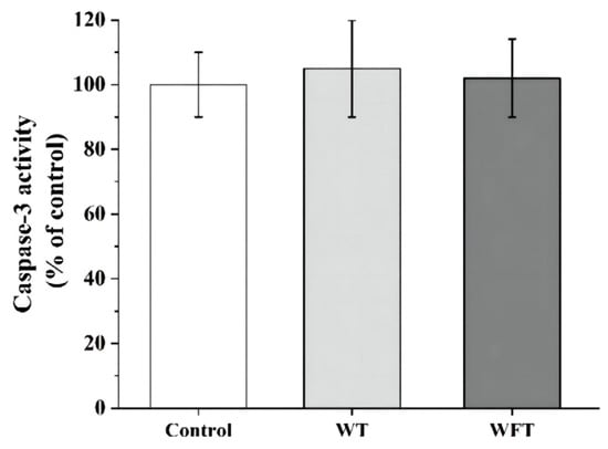 The shrimp exhibited no significant differences in the activity of caspase-3 activity compared to the untreated shrimp after both WFT and WT (control) (p > 0.05, Figure 4).