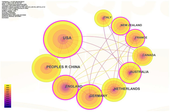 When viewed from a temporal distribution viewpoint, the number of research publications pertaining to plant-based meat substitutes demonstrated a general upward trend between 2013 and 2024. After 2019, related research expanded quickly. This could be because the world’s first plant-based meat company debuted on the NASDAQ in 2019, and the plant-based meat market has subsequently experienced explosive growth. The literature started to spread by 2022. The increased public emphasis on eating healthily may be connected to this. Because it has more protein and less fat than regular meat, plant-based meat is growing in popularity as an alternative. Figure 1 displays the number of relevant publications and their trend over time.