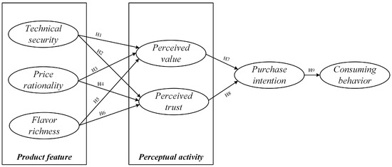 According to the current research, we discovered that depending on the circumstance, consumers’ buying intention is influenced differently by perceived value and perceived trust. First of all, after balancing the perceived benefits of a product or service against the cost of obtaining it, consumers’ perceived value is the overall assessment of the utility of that good or service [35]. After being first introduced to the topic of consumer buying by [36], perceived trust was shown by later researchers to directly affect customers’ propensity to purchase food [23]. More research is needed to determine how these perceived traits of customers may impact their purchasing intention and behavior in the artificial meat market. Consequently, the research hypotheses about the influence of consumers’ perceptual activity on purchase intention and consuming behavior are as follows.