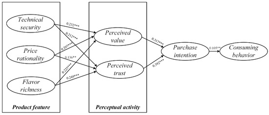 Firstly, the effects of plant-based meat product characteristics on consumers’ perceptual activity were analyzed. It can be seen from the results of hypothesis testing that the impact of plant-based meat product characteristics on consumers’ perceptual activity is significant.
