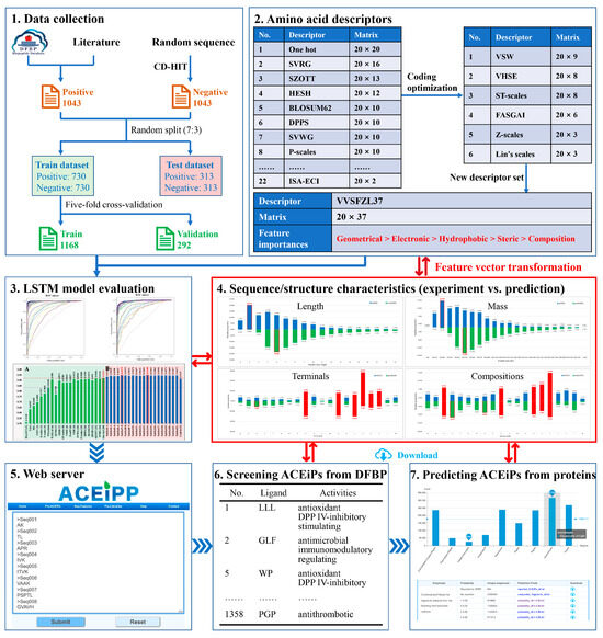 - Manavalan, B.; Basith, S.; Shin, T.H.; Wei, L.; Lee, G. mAHTPred: A sequence-based meta-predictor for improving the prediction of anti-hypertensive peptides using effective feature representation. Bioinformatics 2019, 35, 2757–2765. [Google Scholar] [CrossRef] [PubMed]