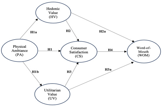 Despite the general consensus on the positive effect of HVs on WOM, there is some academic debate regarding this relationship [68,69]. For example, Hartatin and Simanjuntak [70] present a contrasting view, suggesting that HV does not necessarily influence WOM intentions. This divergence highlights the complexity of the HV-WOM relationship, indicating that other factors, such as individual personality traits, consumer social context, and specific product features, may also play a crucial role in determining WOM behavior. Furthermore, while some studies propose that a high perceived HV may trigger WOM due to the uniqueness and memorability of the experience [68], Hartatin and Simanjuntak’s [70] findings emphasize the need for a more nuanced exploration of the variables mediating this relationship. In order to address the controversies presented in the literature, this study aims to test the following hypothesis: