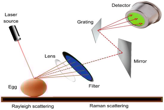 - Davari, M.; Bahreini, M.; Sabzevari, Z. Developing a non-destructive method for the detection of egg quality and freshness using micro-Raman spectroscopy. Appl. Food Res. 2024, 4, 100453. [Google Scholar] [CrossRef]