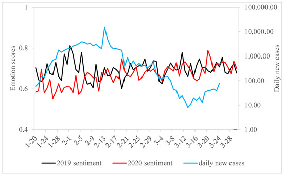 “Sweets” blogs daily mean emotion scores and daily new cases.