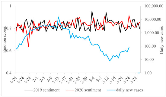 In this study, we utilized Natural Language Processing (NLP) technology to conduct sentiment analysis on the content of microblogs. NLP, a branch of linguistics, computer science, and artificial intelligence, focuses on the interaction between computer systems and human language. It focuses on computer programming techniques for handling and evaluating large amounts of natural language input. Recently, NLP has been highlighted as a highly discussed technology and has seen remarkable advancements, particularly due to deep learning. Deep learning, a subset of machine learning, is inspired by the brain’s structure and function, using algorithms known as artificial neural networks. For our emotional analysis, we chose Baidu’s AI-based natural language processing platform, which employs a dictionary-based approach. We used Baidu’s application programming interface (API) to extract emotional tendencies from microblogs, categorizing them into positive, neutral, and negative sentiments. Another part of NLP, sentiment analysis, is a key tool in understanding public opinion on social media and a complex process that involves various techniques, such as opinion mining and online textual data processing [25,75]. In recent years, one of the growing trends is that with the growth of Internet technology and mobile social media platforms, people are increasingly sharing their thoughts and feelings on the Internet and social platforms when they experience certain events. Numerous empirical research efforts have been made by scholars to comprehend the emotional responses of users to social media content [76,77], utilizing the gathering and examination of online textual data from social media users [78,79,80].