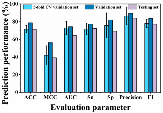 The data of 208 glycosidase inhibitory peptides were collected from the literature, and the IC50 threshold of glycosidase inhibitory activity was defined as 10 mM. When the IC50 was less than 10 mM, it was considered to have inhibitory activity, and when the IC50 was more than 10 mM, it was considered to have low inhibitory activity or no inhibitory activity. The training set consisted of 69 highly inhibitory peptides and 96 peptides with low or no inhibitory activity; the test set consisted of 17 highly inhibitory peptides and 25 peptides with low or no inhibitory activity.