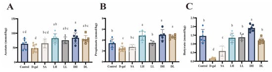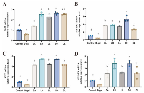 | D-gal | 34.79 ± 0.91 b | 13.82 ± 0.43 | 2.93 ± 0.12 |
