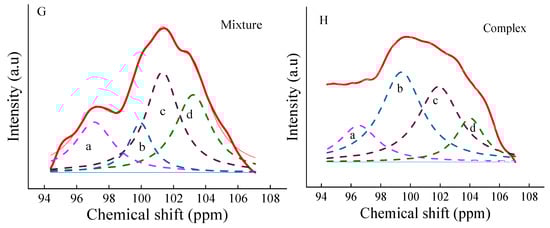 The sample was placed in a rotor and analyzed using a 599.7 MHZ wide-cavity solid superconducting NMR spectrometer (JNM-ECZ600R/S1, Nippon electronic company, Tokyo, Japan) with a 7 mm MAS BB/BB probe at an MAS speed of 12 kHz. Origin software version 8 was employed to fit the peaks in chemical shifts of 93–107 ppm using Gaussian and Lorentz functions. The correlation coefficient (r2) of the fitting must be greater than 0.98.
