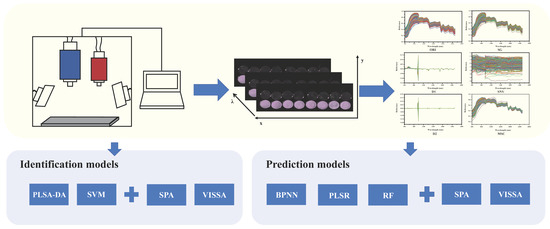 - Wang, Y.; Zhang, Y.; Yuan, Y.; Zhao, Y.; Nie, J.; Nan, T.; Huang, L.; Yang, J. Nutrient content prediction and geographical origin identification of red raspberry fruits by combining hyperspectral imaging with chemometrics. Front. Nutr. 2022, 9, 980095. [Google Scholar] [CrossRef]