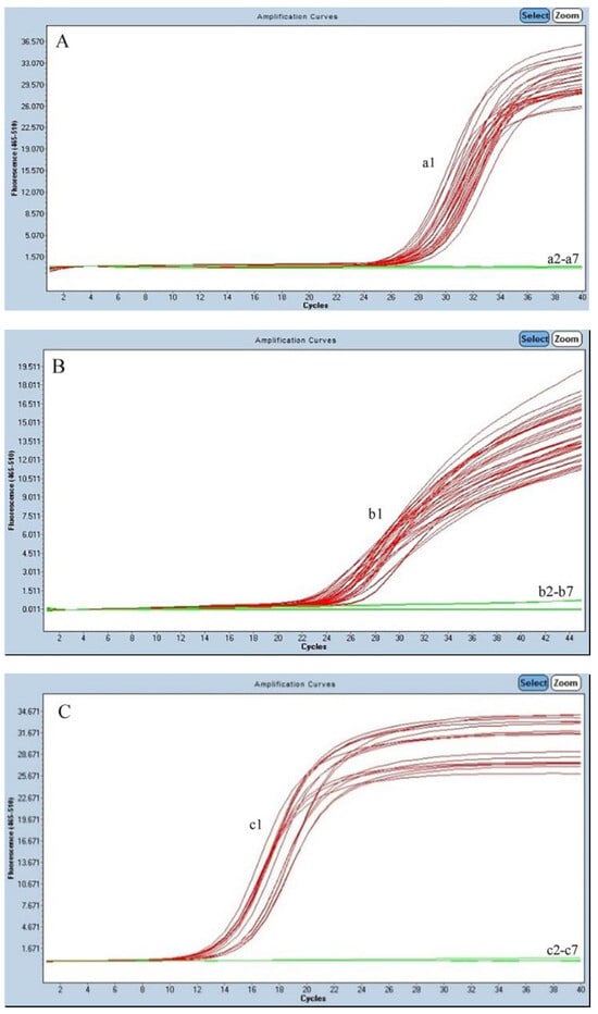 3.2. Evaluation of the Primers and Probes for Real-Time PCR Assay