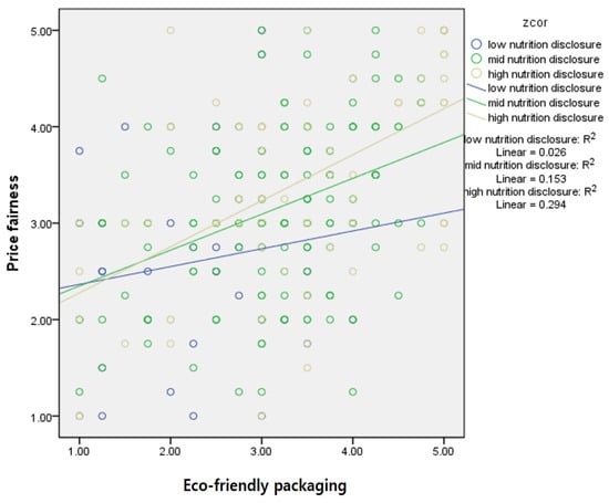 Moderating effect of nutritional disclosure on the relationship between eco-friendly packaging and price fairness.