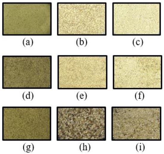 Images of dried sea mustard waste parts: (a) freeze-dried sporophyll; (b) freeze-dried root; (c) freeze-dried stem; (d) oven-dried sporophyll; (e) oven-dried root; (f) oven-dried stem; (g) microwave-dried sporophyll; (h) microwave-dried root; (i) microwave-dried stem.