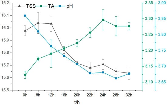 pH, TSS, and TA, of PAMJ at different fermentation times.