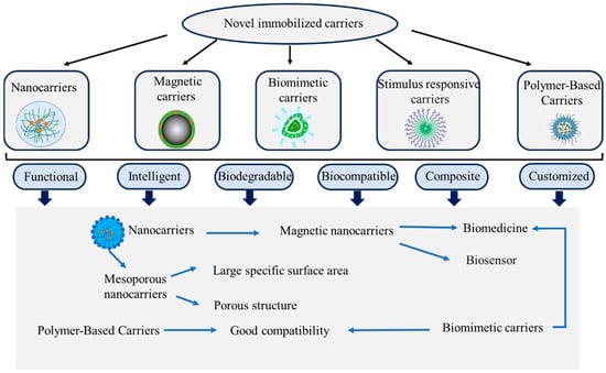 Commonly used carrier materials for enzyme immobilization and their respective targets.