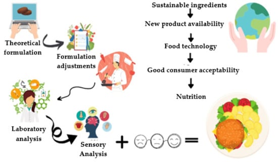 Figure 2 illustrates the process of developing new food products from sustainable ingredients, highlighting the importance of planning and testing formulations that have nutritional, technological, and sensory potential and the quality to meet the demands of the greatest number of consumers.