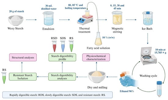 Castro-Campos, F.G.; Esquivel-Fajardo, E.A.; Morales-Sánchez, E.; Rodríguez-García, M.E.; Barron-Garcia, O.Y.; Ramirez-Gutierrez, C.F.; Loarca-Piña, G.; Gaytán-Martínez, M. Resistant Starch Type 5 Formation by High Amylopectin Starch–Lipid Interaction. Foods 2024, 13, 3888. https://doi.org/10.3390/foods13233888