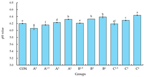 | C6 | 5.33 ± 0.24 | 6.61 ± 0.24 ab | 6.22 ± 0.28 ab | 6.39 ± 0.28 b |