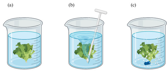 - Ölmez, H. Effect of different sanitizing methods and incubation time and temperature on inactivation of Escherichia coli on lettuce. J. Food Saf. 2010, 30, 288–299. [Google Scholar] [CrossRef]
