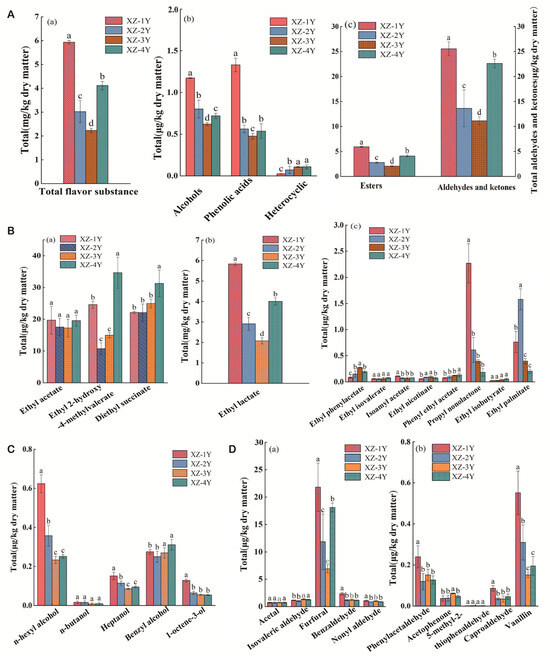 3.2. Analysis of Volatile Flavor Substance Content in Xiangzao in Different Fermentation Years