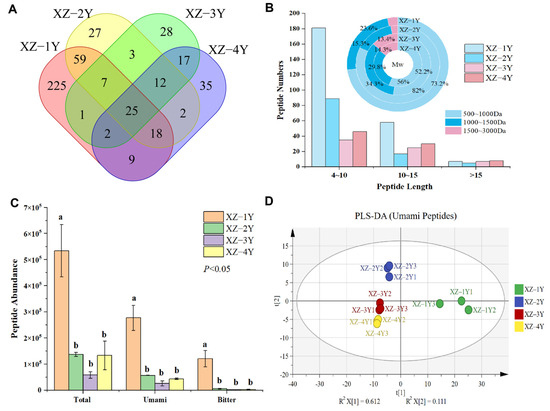 3.3. Analysis of Flavor Peptide of Xiangzao in Different Fermentation Years