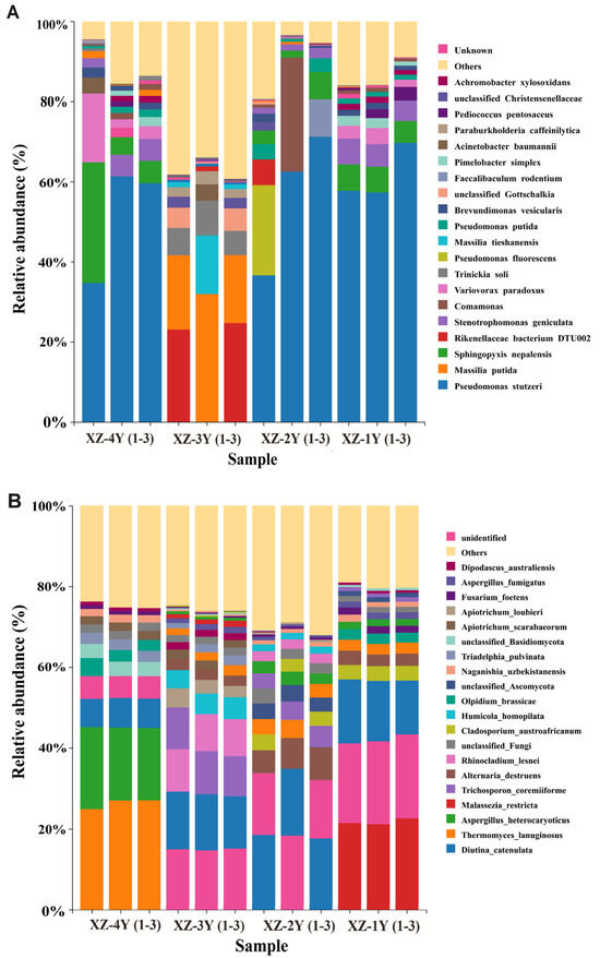3.4. Microbiome Analysis of Xiangzao in Different Years