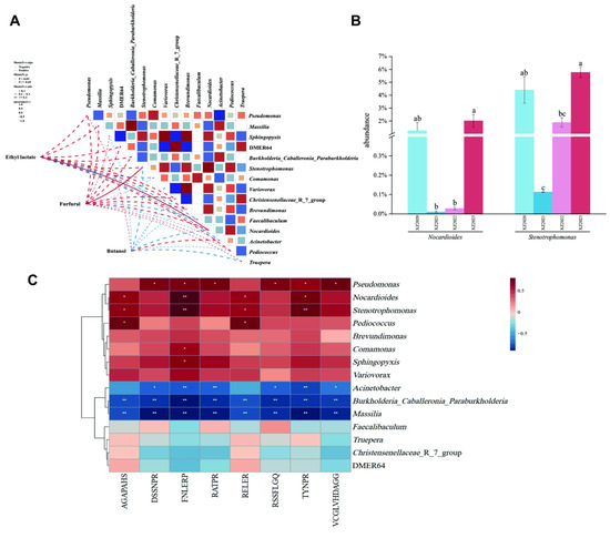 2.2.5. Correlation Analysis Between Microbial Diversity and Flavor Components in Xiangzao