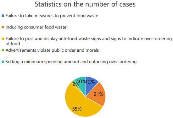 Proportion of different numbers of cases against food waste. (Note: Data from typical cases published by the General Administration of Market Supervision and Administration).