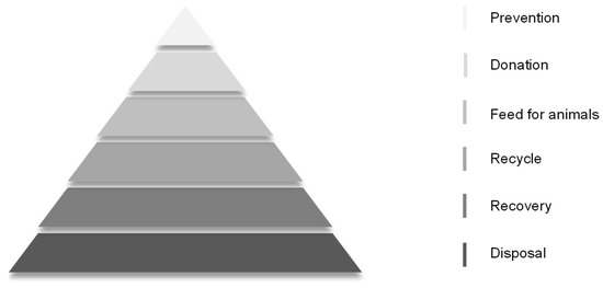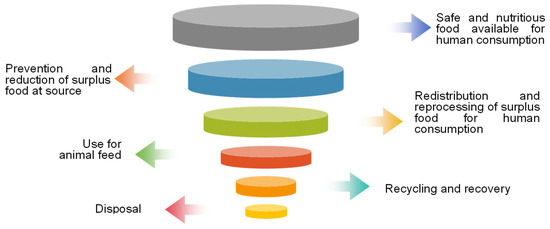 EU countries have developed food handling hierarchies and food use hierarchies aimed at maximizing the retention of food in the supply chain for human consumption (as shown in Figure 4 and Figure 5) [77].