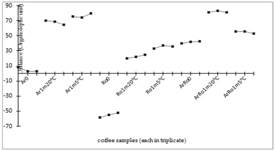 - Dippong, T.; Dan, M.; Kovacs, M.H.; Kovacs, E.D.; Levei, E.A.; Cadar, O. Analysis of Vola-tile Compounds, Composition, and Thermal Behavior of Coffee Beans According to Variety and Roasting Intensity. Foods 2022, 11, 3146. [Google Scholar] [CrossRef]
