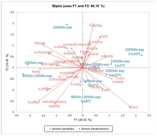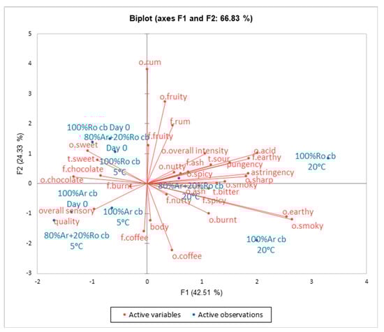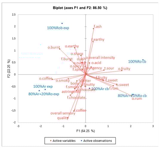 3.4. Effect of Brewing Methods on Sensory Properties of Non-Stored Coffees Samples
