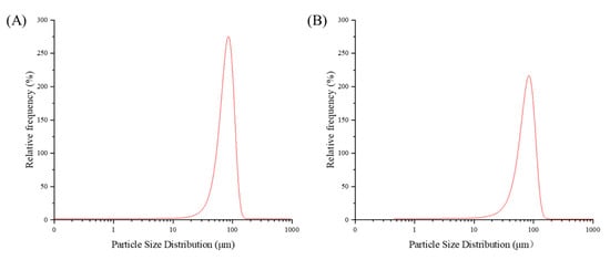 The particle size distribution of ZBSP (A) and FZBSP (B). All tests were performed 3 times.