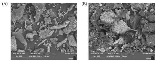 As Figure 4 shows, ZBSP exhibited a flat layered structure on the surface under the electron microscope, with the larger particles having smooth edges. In contrast, FZBSP exhibited a more fragmented and irregular layered structure, and the surface of the particles became wrinkled and porous due to the co-fermentation of B. subtilis and L. plantarum. After fermentation, the protein structure was looser, indicating that the mixed fermentation of B. subtilis and L. plantarum could completely decompose the protein material, which was more conducive to digestion and absorption and also improved the nutritional properties of ZBSP.