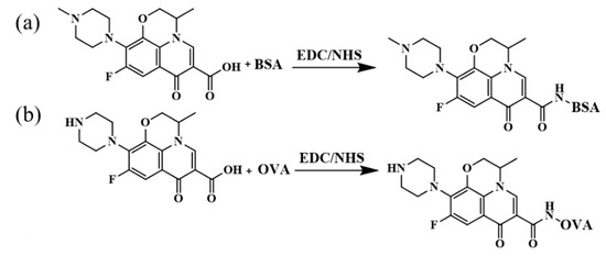- Chen, X.; Li, Z.; Guo, J.; Li, D.; Gao, H.; Wang, Y.; Xu, C. Simultaneous screening for marbofloxacin and ofloxacin residues in animal-derived foods using an indirect competitive immunoassay. Food Agric. Immunol. 2017, 28, 489–499. [Google Scholar] [CrossRef]