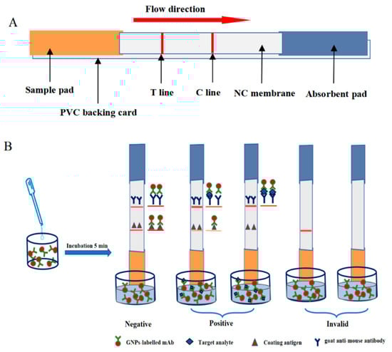 - Byzova, N.A.; Smirnova, N.I.; Zherdev, A.V.; Eremin, S.A.; Shanin, I.A.; Lei, H.-T.; Sun, Y.; Dzantiev, B.B. Rapid immunochromatographic assay for ofloxacin in animal original foodstuffs using native antisera labeled by colloidal gold. Talanta 2014, 119, 125–132. [Google Scholar] [CrossRef]