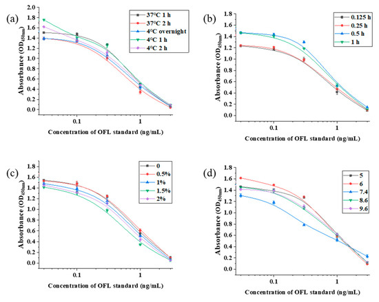 3.5. Optimization Results of ic-ELISA Working Conditions