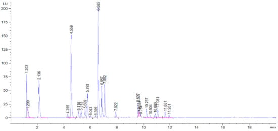 Determination of amino acids using chromatographic techniques and fluorescence detection resulted in notable amounts in yampee mucilage and lyophilized pulp fractions. The main amino acidic peaks detected are shown in Figure 2, with corresponding identification and amounts depicted in Table 4.