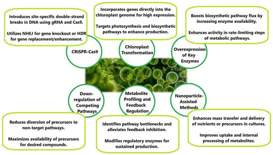 This integrated approach not only improves existing metabolic pathways but also opens avenues for exploring novel biosynthetic routes. Such innovations contribute to the development of sustainable bioprocesses that can meet the growing industrial demand for biofuels, nutraceuticals, and pharmaceuticals [39].