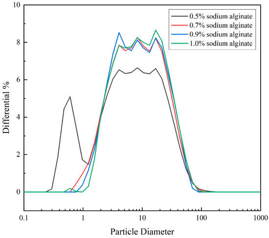 Particle-size distribution of microgel with different sodium alginate concentrations.
