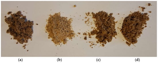 Meanwhile, since the substrate was of plant origin, the method used for the test involved the determination of moisture content in cereals and cereal products via the reference method (ISO 712:2009) [38]. The samples were heated for 2 h in an oven at a temperature of 103 °C. The process of heating, cooling, and weighing was repeated according to the study until the difference between the results of two consecutive weighings (m2) after 1 h of heating was no greater than 0.1% of the sample mass.