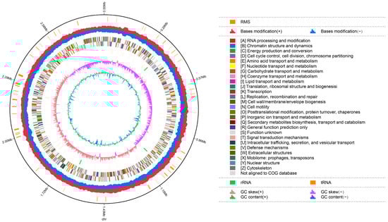 Genomic DNA extraction, determination of the quality and quantity of extracted DNA, DNA fragmentation, and sequencing with the PacBio Sequel II platform (Frasergen Bioinformatics Co., Ltd., Wuhan, China) were carried out. The raw sequencing reads (also called polymerase reads) generated from the PacBio platforms were processed using SMRTlink v8.0. Error correction of the reads was performed as part of the Canu (version 2.0) assembly process. The genome was assembled by Canu v2.0. Canu detects and annotates that the final assembly is circular when the best overlap graph (BOG) is circular. As an alternative method, we confirmed genome circularization by identifying repeated sequences at the two ends using BLASTN (version 2.7.1). The NCBI Prokaryotic Genome Automatic Annotation Pipeline (PGAP) was applied to complete genome annotation. The virulence factors and pathogenicity of AKK PROBIO were predicted using the VFD database (virulence factors of pathological bacteria, http://www.mgc.ac.cn/VFs/main.htm, accessed on 6 April 2023), VirulenceFinder database (https://cge.cbs.dtu.dk/services/VirulenceFinder, accessed on 6 April 2023), and PathogenFinder database (https://cge.cbs.dtu.dk/services/PathogenFinder, accessed on 6 April 2023).