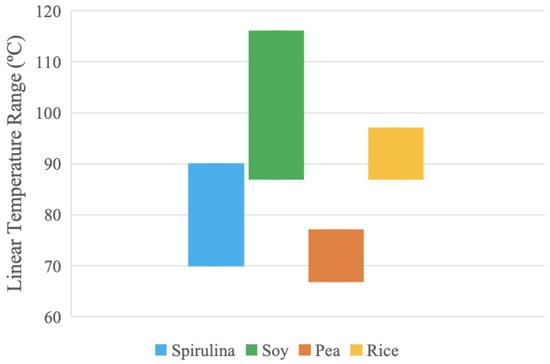 | Protein | 100% Powder Sample Linear Temperature Range (°C) | Viscosity Range (cP) | Wholesale Retail Purchase Cost (USD/g protein) (Table 1) |