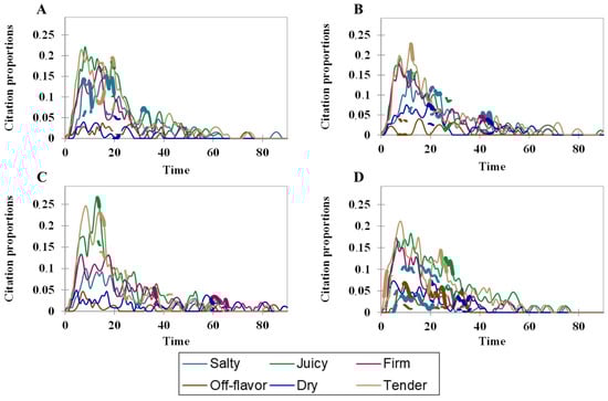 - Castura, J.C.; Baker, A.K.; Ross, C.F. Using contrails and animated sequences to visualize uncertainty in dynamic sensory profiles obtained from temporal check-all-that-apply (TCATA) data. Food Qual. Prefer. 2016, 54, 90–100. [Google Scholar] [CrossRef]