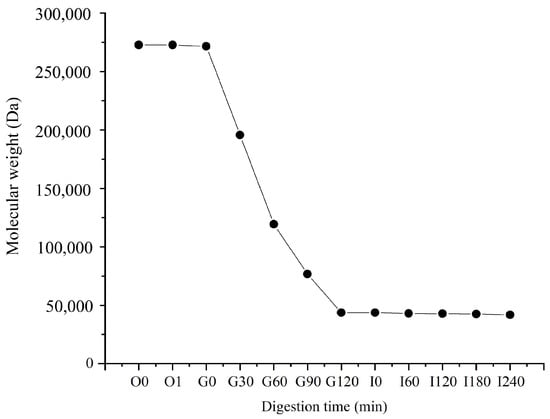 Changes in molecular weight of PSA during digestion. O: oral digestion, G: gastric digestion; I: intestinal digestion.
