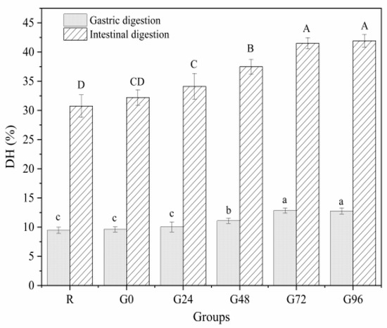 Figure 8. In vitro digestibility of germinated black bean protein isolate. Note: Different letters indicate significant difference between the mean values of different samples (p < 0.05).