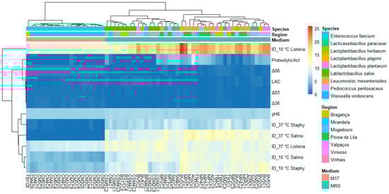 Figure 4. Heatmap of physicochemical characterization data of lactic acid bacteria (LAB) isolated from alheira and species identification of LAB isolates. Legend: See Section 2.6.3.