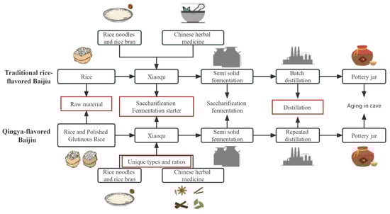 Wu, F.; Fan, S.; He, G.; Liang, S.; Xu, Y.; Tang, K. Comparison of Aroma Compounds and Sensory Characteristics between Two Different Types of Rice-Based Baijiu. Foods 2024, 13, 681. https://doi.org/10.3390/foods13050681