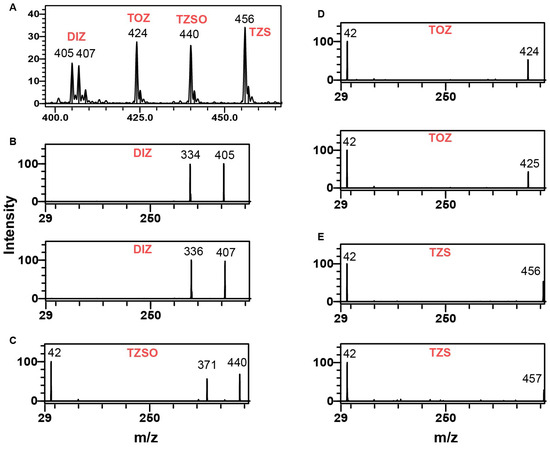 | DIZ; TOZ; TZS; TZSO [9] | Muscle; egg | Ethylacetate | GPC | DIZ: 404/334 TOZ: 424/424 * TZS: 456/456 * TZSO: 440/371 | 0.4 for DIZ and TOZ; 0.6 for TZSO and TZS | 1.2 for DIZ and TOZ; 1.8 for TZSO and TZS |