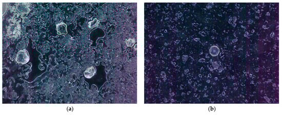 The pH value is an important parameter for assessing the quality of beverages, which directly affects the storage conditions and preservation methods. The results showed that the pressures of all samples treated through homogenisation were significantly lower than 0 MPa (p < 0.05), and the pH value was the lowest at 100 MPa, which was 0.13 lower than that of the sample under 0 MPa (Table 2). Due to the pressure generated during homogenisation, the particle size of the beverages is reduced, resulting in an increase in the exposed surface area of the particles and a change in pH, which is influenced by charged molecules. On the other hand, homogenisation pressures and the accompanying high temperatures may change the conformation of proteins, affecting the charge or solubility and leading to a change in the pH value of the beverages [60]. Gul and Saricaoglu et al. studied the pH of hazelnut beverages and found that the pH was reduced after homogenisation treatment, which they attributed to changes in the dissociation constants of acids and bases to the applied homogenisation pressure [33]. Homogenisation significantly affected the TSS of LLBs (p < 0.05), and the TSS content gradually increased with homogenisation pressure. The highest TSS content was 6.33 ◦Brix at 100 MPa, which was 1.35 ◦Brix higher than that at 0 MPa. Similar results were obtained in a previous study on hazelnut milk, and the increase in sugar content might be due to the release of starch granules under mechanical pressure or an increase in the proportion of soluble protein in the homogenisation treatment [46]. The effect of the homogenisation pressures of 0, 20, 40, 60, 80, and 100 MPa on lily pulps was investigated by Liu et al. [30]. Lily pulps were reported to be a composite suspension system consisting of starch-filled cells, parenchymal cells, or aggregates of cells dispersed in liquids. Stress and high-temperature cracking of these cells during homogenisation resulted in an increased starch grain expansion and gelatinisation degree, with a corresponding increase in the TSS content.