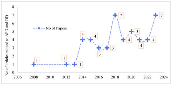 Publication trend related to agricultural production diversity and diet diversity. Note: APD denotes agricultural production diversity; DD denotes dietary diversity.