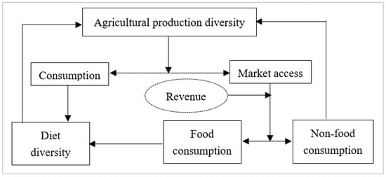 The underlying causal mechanisms still need to be better understood between agricultural production diversity and dietary diversity. Considering that small farmers are micro-operators integrating production and consumption, the influential mechanism of agricultural production on food security deserves deeper exploration (Figure 6).